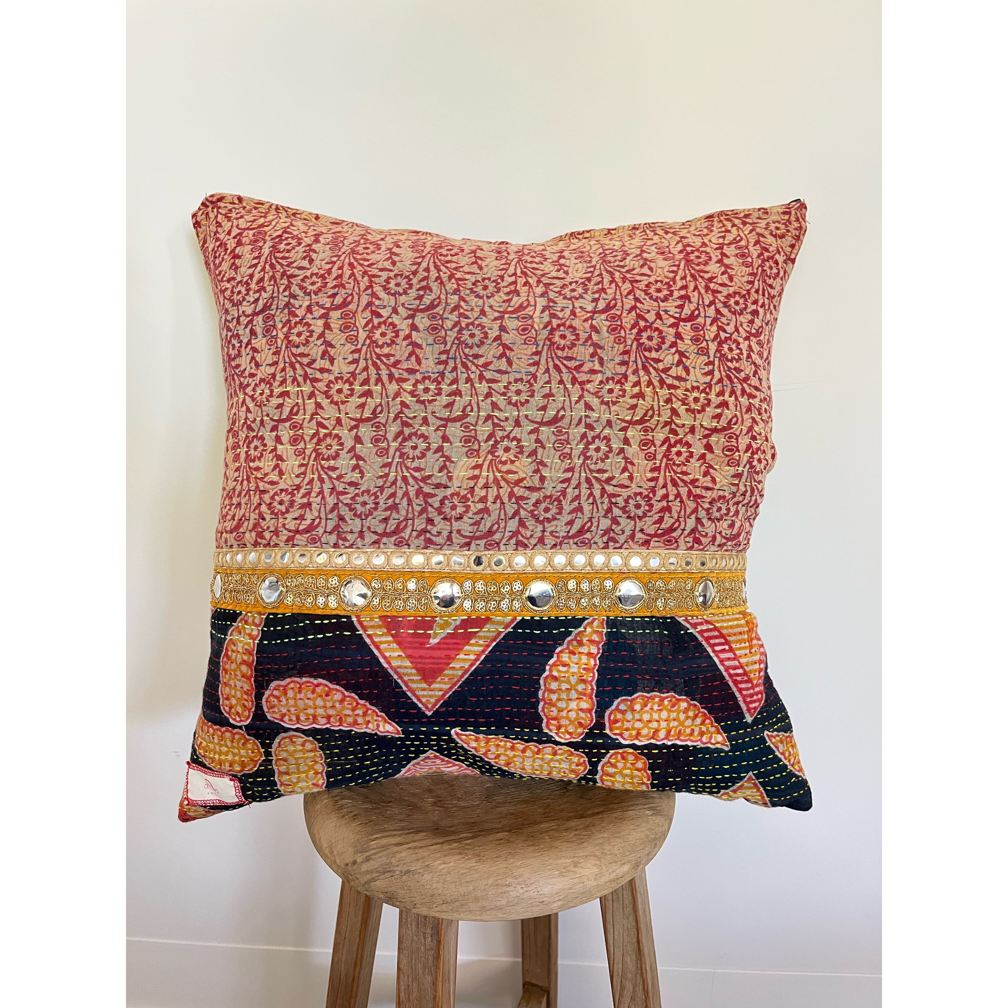 前後異なった生地を使用したクッションカバーになります。