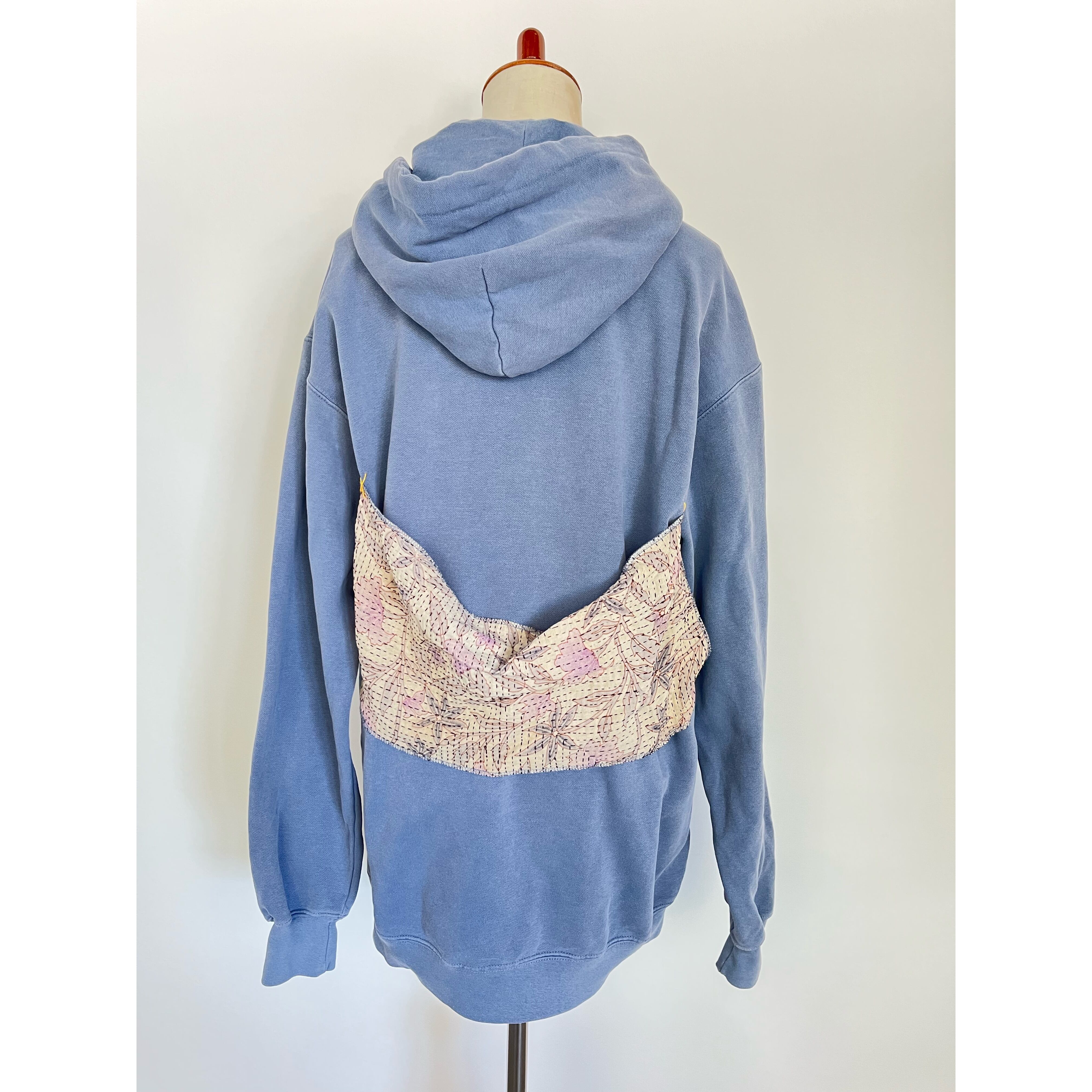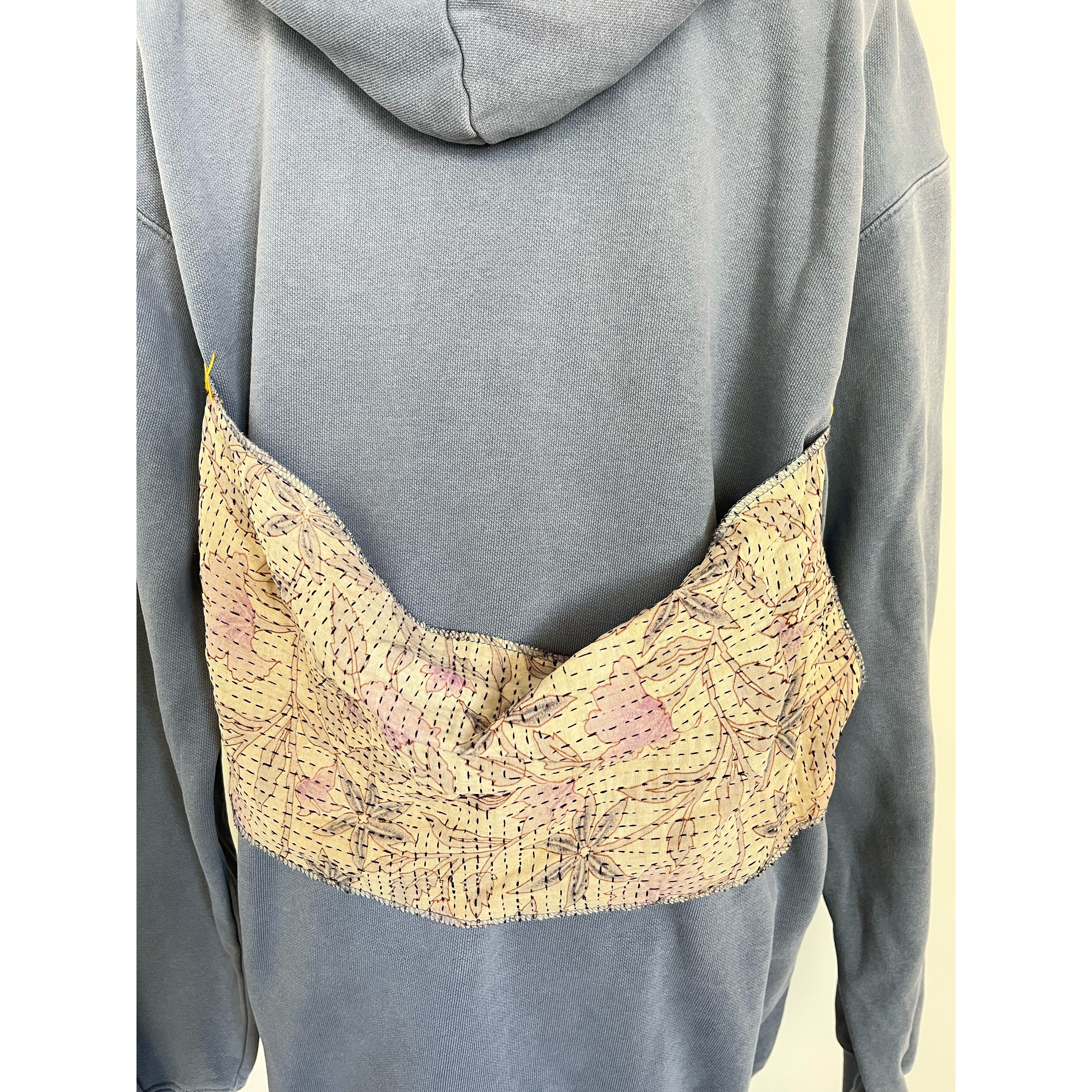 後ろ見頃に大胆にカンタを4点留めした個性的なパーカーになります。